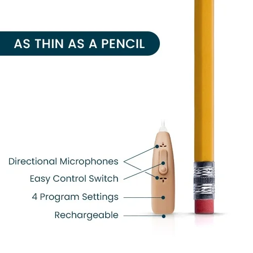 Premium rechargeable OTC hearing aids—in our sleekest design yet—with free telehealth care from licensed hearing professionals. No prescription needed, no office visits, and no hassle.