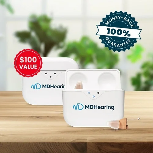 We are confident you will love our hearing aids. That's why every MDHearing device comes with a 60-day risk-free trial and 100% money-back guarantee. You can also choose to add our MDShield Protection Plan at checkout—100% protection against any damage (even accidental) for full peace of mind.